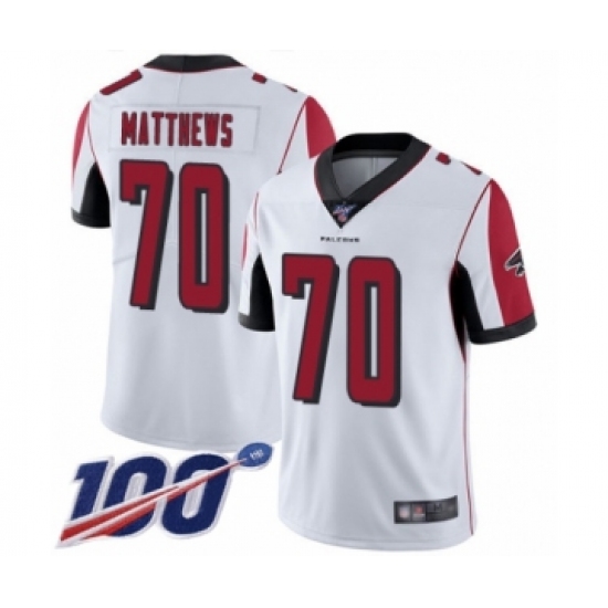 Men's Atlanta Falcons #70 Jake Matthews White Vapor Untouchable Limited Player 100th Season Football Jersey