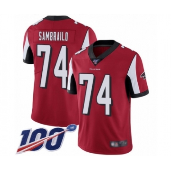 Men's Atlanta Falcons #74 Ty Sambrailo Red Team Color Vapor Untouchable Limited Player 100th Season Football Jersey