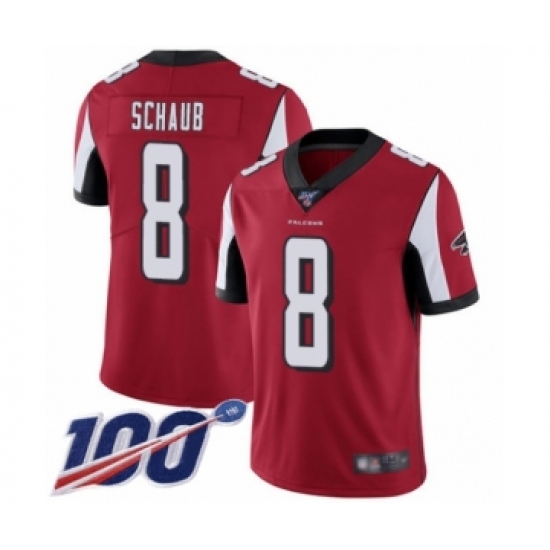 Men's Atlanta Falcons #8 Matt Schaub Red Team Color Vapor Untouchable Limited Player 100th Season Football Jersey