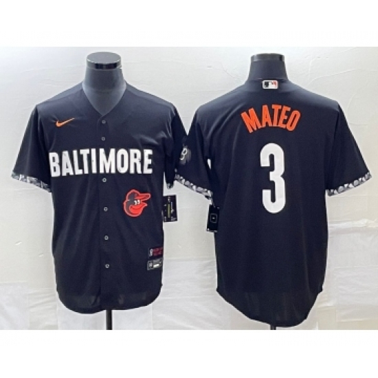 Men's Baltimore Orioles #3 Jorge Mateo Black 2023 City Connect Cool Base Stitched Jersey 1