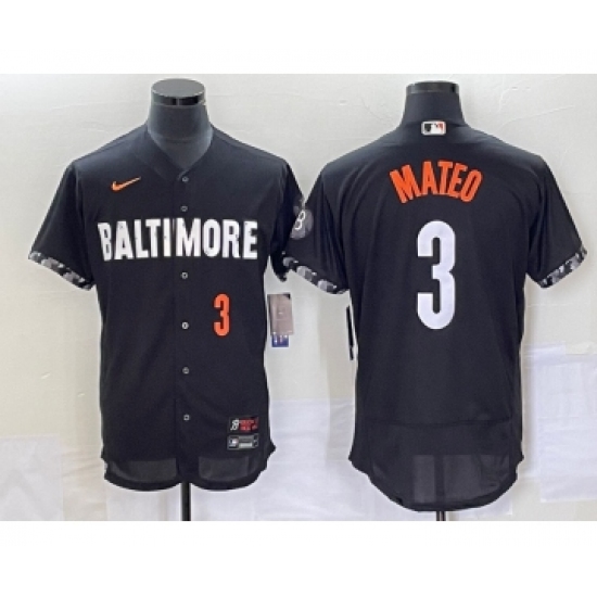 >Men's Baltimore Orioles #3 Jorge Mateo Number Black 2023 City Connect Flex Base Stitched Jersey 1