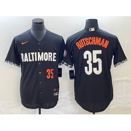 Men's Baltimore Orioles #35 Adley Rutschman Number Black 2023 City Connect Cool Base Stitched Jersey 1