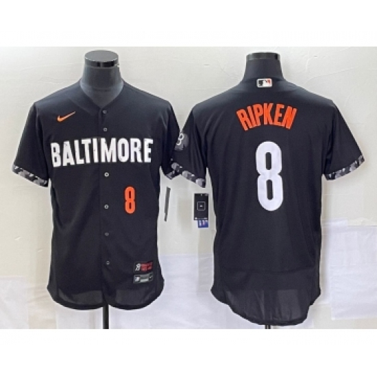 Men's Baltimore Orioles #8 Cal Ripken Jr Number Black 2023 City Connect Flex Base Stitched Jersey 1