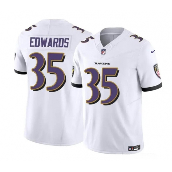 Men's Baltimore Ravens #35 Gus Edwards White 2023 F.U.S.E. Vapor Limited Football Stitched Jersey