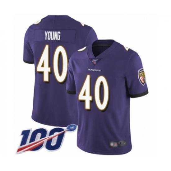Men's Baltimore Ravens #43 Justice Hill Purple Team Color Vapor Untouchable Limited Player 100th Season Football Jersey