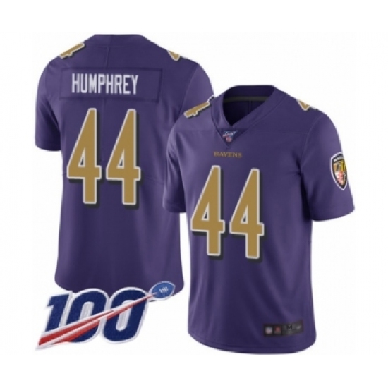 Men's Baltimore Ravens #44 Marlon Humphrey Purple Team Color Vapor Untouchable Limited Player 100th Season Football Jersey