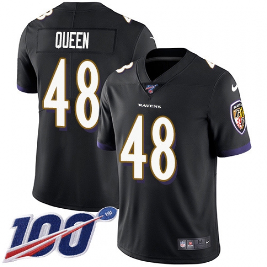 >Men's Baltimore Ravens #48 Patrick Queen Black Alternate Stitched NFL 100th Season Vapor Untouchable Limited Jerse