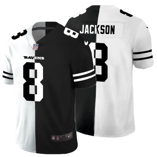 Men's Baltimore Ravens #8 Lamar Jackson Black White Limited Split Fashion Football Jersey