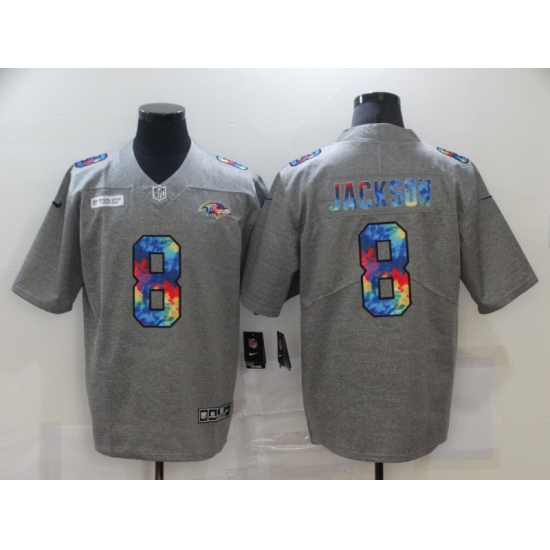 Men's Baltimore Ravens #8 Lamar Jackson Gray Rainbow Version Nike Limited Jersey