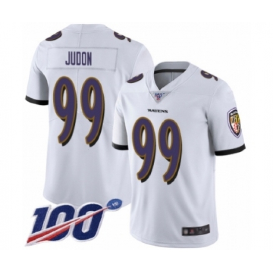 >Men's Baltimore Ravens #99 Matt Judon White Vapor Untouchable Limited Player 100th Season Football Jersey