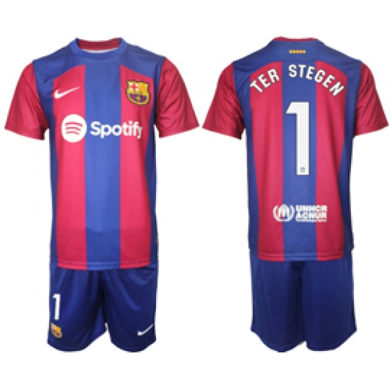 Men's Barcelona #1 Ter Stegen Blue Red 2023-24 Home Soccer Jersey
