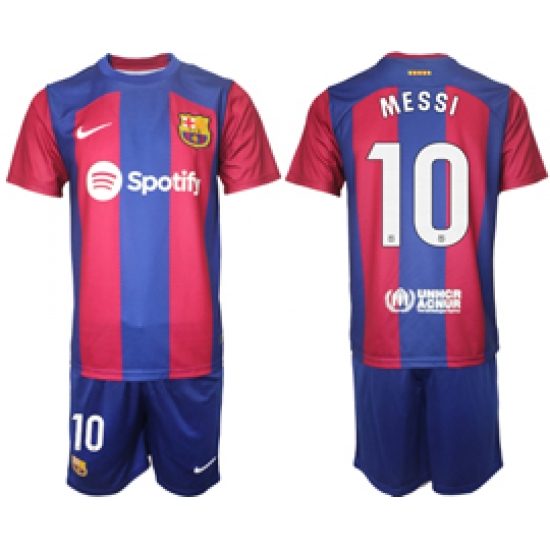 Youth Barcelona #10 Messi Blue Red 2023-24 Home Soccer Jersey