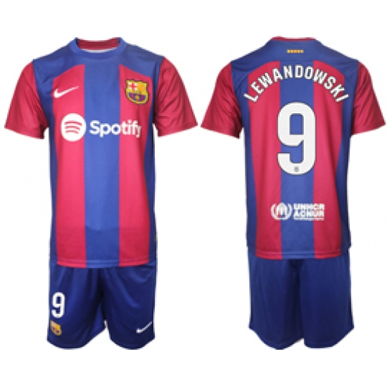 >Men's Barcelona #9 Lewandowski Blue Red 2023-24 Home Soccer Jersey
