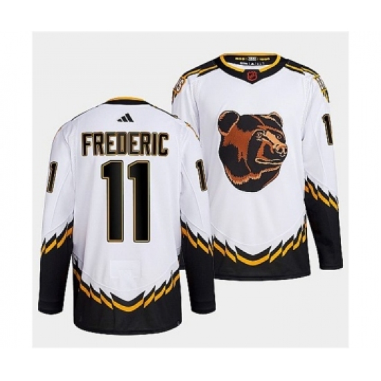 >Men's Boston Bruins #11 Trent Frederic 2022 White Reverse Retro Stitched Jersey