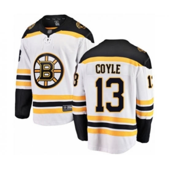 Men's Boston Bruins #13 Charlie Coyle Authentic White Away Fanatics Branded Breakaway Hockey Jersey