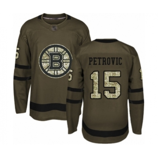 >Men's Boston Bruins #15 Alex Petrovic Authentic Green Salute to Service Hockey Jersey