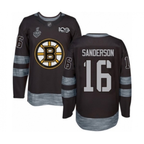 Men's Boston Bruins #16 Derek Sanderson Authentic Black 1917-2017 100th Anniversary 2019 Stanley Cup Final Bound Hockey Jersey