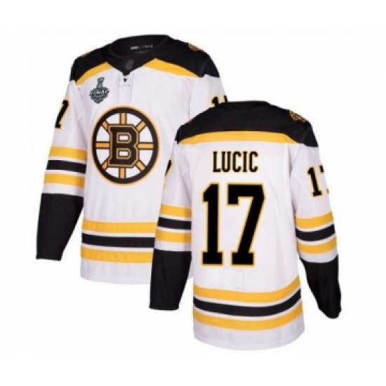 Men's Boston Bruins #17 Milan Lucic Authentic White Away 2019 Stanley Cup Final Bound Hockey Jersey