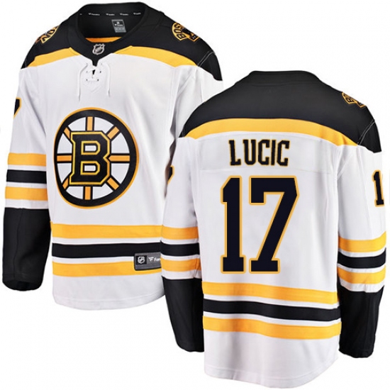 Men's Boston Bruins #17 Milan Lucic Authentic White Away Fanatics Branded Breakaway NHL Jersey