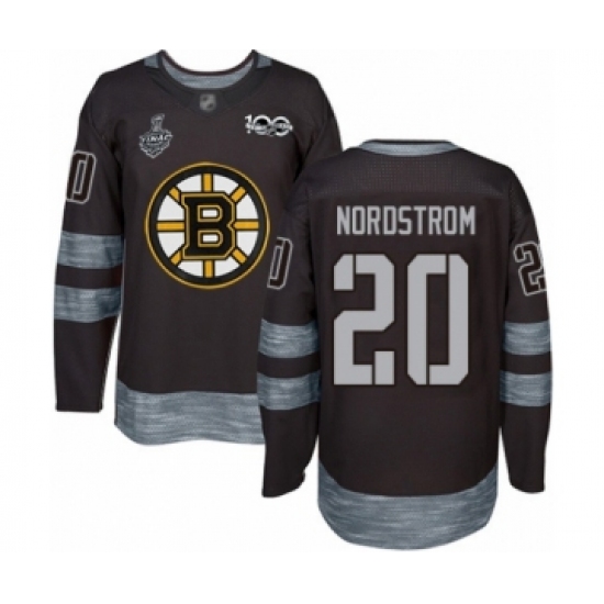 >Men's Boston Bruins #20 Joakim Nordstrom Authentic Black 1917-2017 100th Anniversary 2019 Stanley Cup Final Bound Hockey Jersey