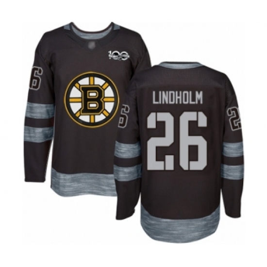 Men's Boston Bruins #26 Par Lindholm Authentic Black 1917-2017 100th Anniversary Hockey Jersey