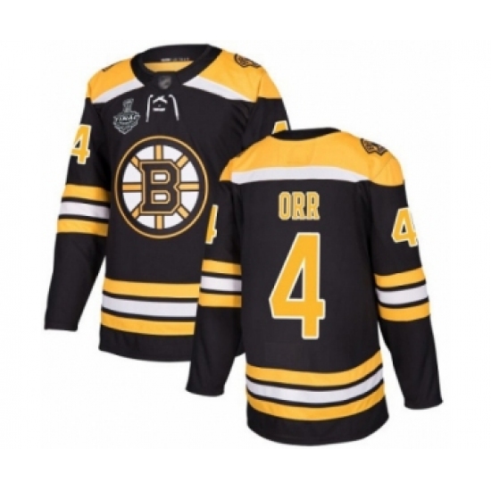 Men's Boston Bruins #4 Bobby Orr Authentic Black Home 2019 Stanley Cup Final Bound Hockey Jersey