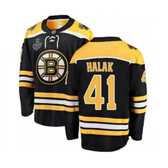 >Men's Boston Bruins #41 Jaroslav Halak Authentic Black Home Fanatics Branded Breakaway 2019 Stanley Cup Final Bound Hockey Jersey