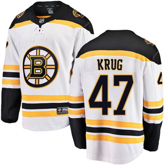 Men's Boston Bruins #47 Torey Krug Authentic White Away Fanatics Branded Breakaway NHL Jersey