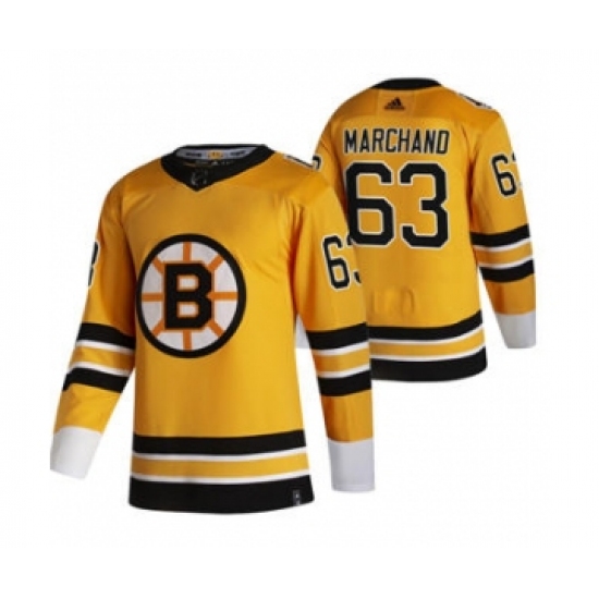 >Men's Boston Bruins #63 Brad Marchand Yellow 2020-21 Reverse Retro Alternate Hockey Jersey