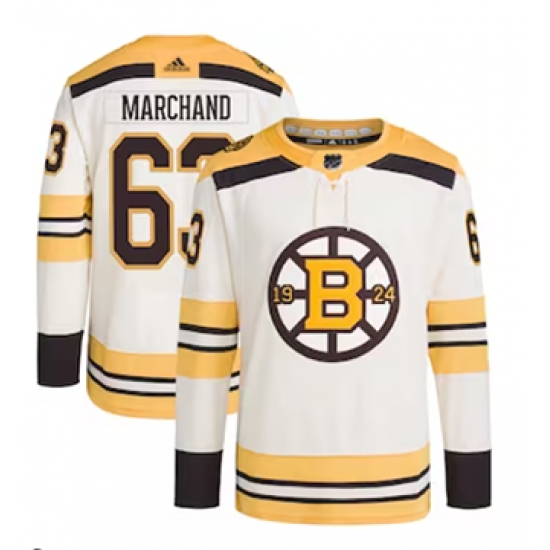 >Men's Boston Bruins #63 Brad Marchand adidas Cream Primegreen Authentic Pro Player Jersey