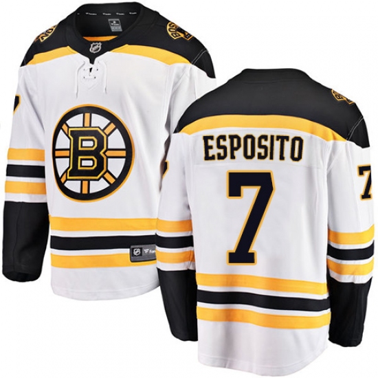 Home>NHL>Boston Bruins>Phil Esposito>Men's Boston Bruins #7 Phil Esposito Authentic White Away Fanatics Branded Breakaway NHL Jersey