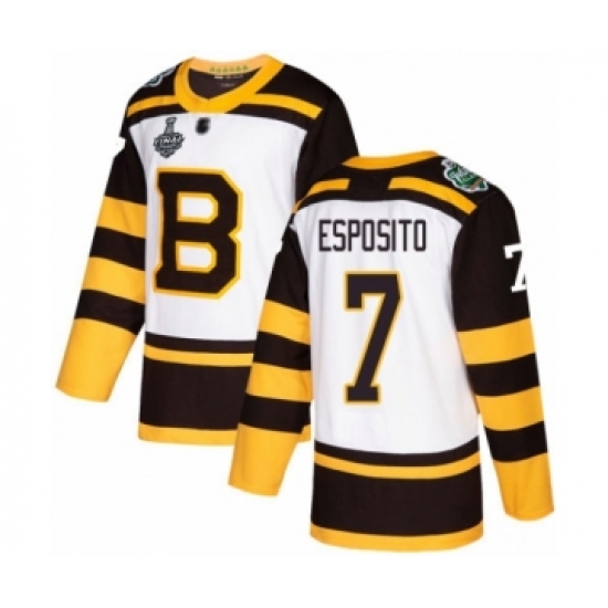 Men's Boston Bruins #7 Phil Esposito Authentic White Winter Classic 2019 Stanley Cup Final Bound Hockey Jersey
