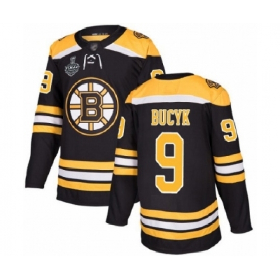 Men's Boston Bruins #9 Johnny Bucyk Authentic Black Home 2019 Stanley Cup Final Bound Hockey Jersey