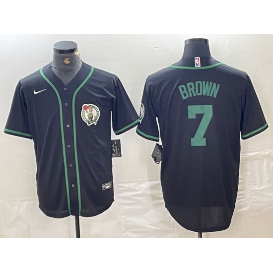 Men's Boston Celtics #7 Jaylen Brown Black With Cool Base Stitched Baseball Jersey