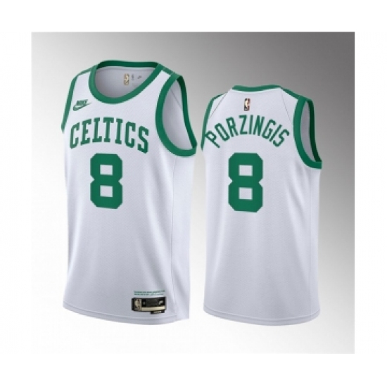 >Men's Boston Celtics #8 Kristaps Porzingis White 2023 Draft Association Edition Stitched Basketball Jersey