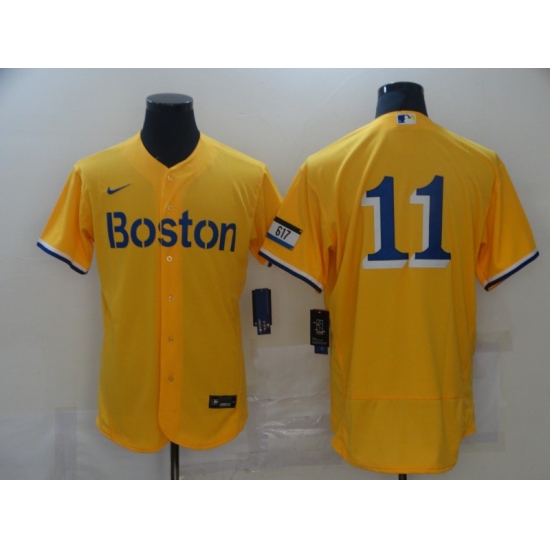 >Men's Boston Red Sox #11 Rafael Devers Nike Gold-Light Blue 2021 City Connect Jersey