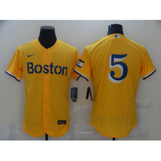 >Men's Boston Red Sox #5 Enrique Hernandez Nike Gold-Light Blue 2021 City Connect Jersey