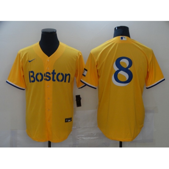 >Men's Boston Red Sox #8 Carl Yastrzemski Nike Gold-Light Blue 2021 City Connect Replica Player Jersey