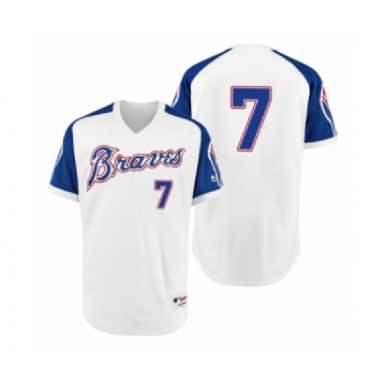 >Men's Braves #7 Dansby Swanson White 1974 Turn Back the Clock Authentic Jersey