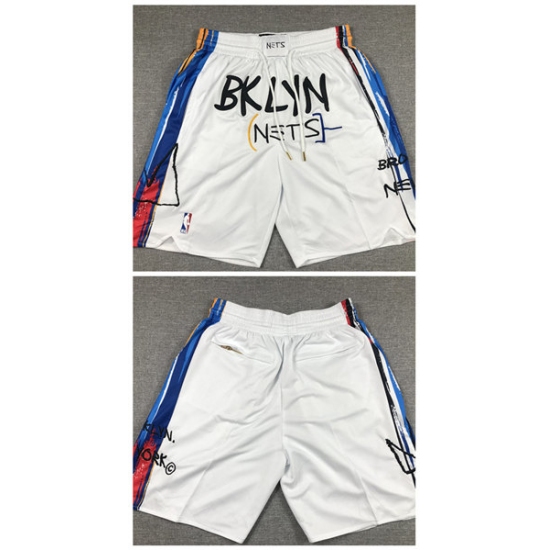 >Men's Brooklyn Nets White Shorts (Run Small)