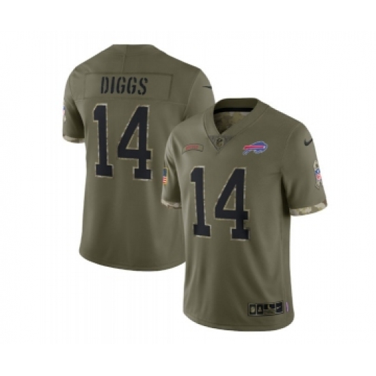 >Men's Buffalo Bills #14 Stefon Diggs 2022 Olive Salute To Service Limited Stitched Jersey