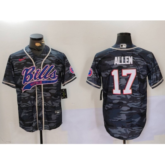 >Men's Buffalo Bills #17 Josh Allen Camo Team Cool Base Stitched Baseball Jersey