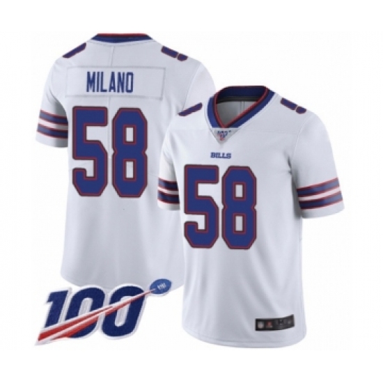 Men's Buffalo Bills #58 Matt Milano White Vapor Untouchable Limited Player 100th Season Football Jersey