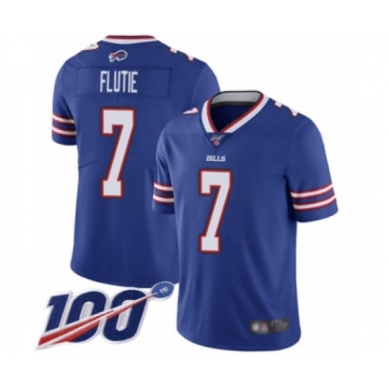 >Men's Buffalo Bills #7 Doug Flutie Royal Blue Team Color Vapor Untouchable Limited Player 100th Season Football Jersey