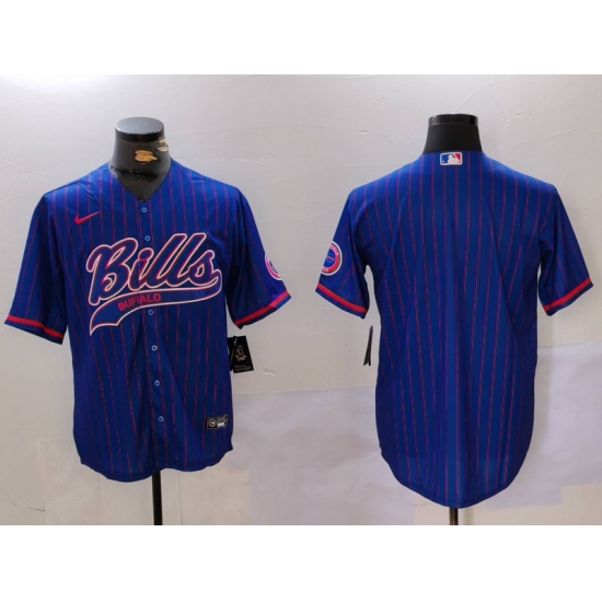 Men's Buffalo Bills Blank Blue Team Cool Base Stitched Baseball Jersey