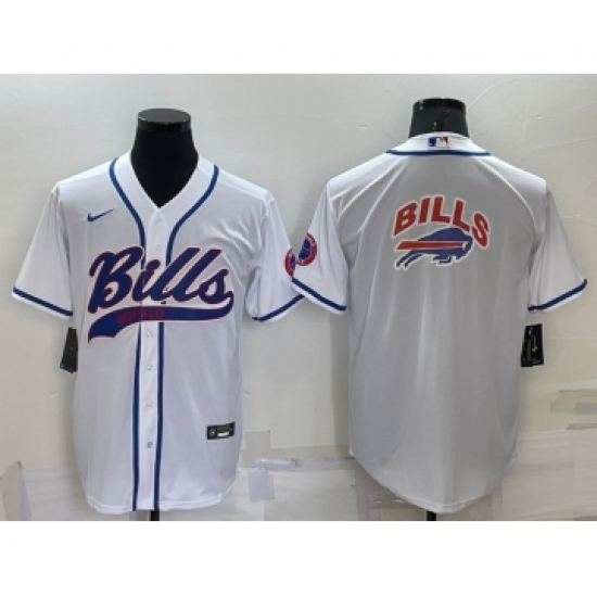 Men's Buffalo Bills White Team Big Logo With Patch Cool Base Stitched Baseball Jersey