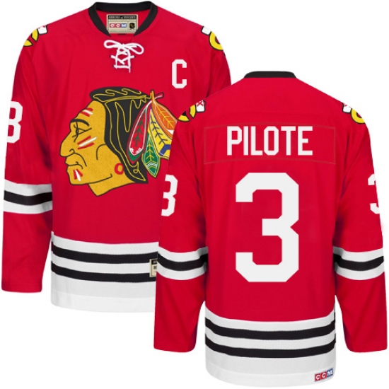 Men's CCM Chicago Blackhawks #3 Pierre Pilote Authentic Red New Throwback NHL Jersey