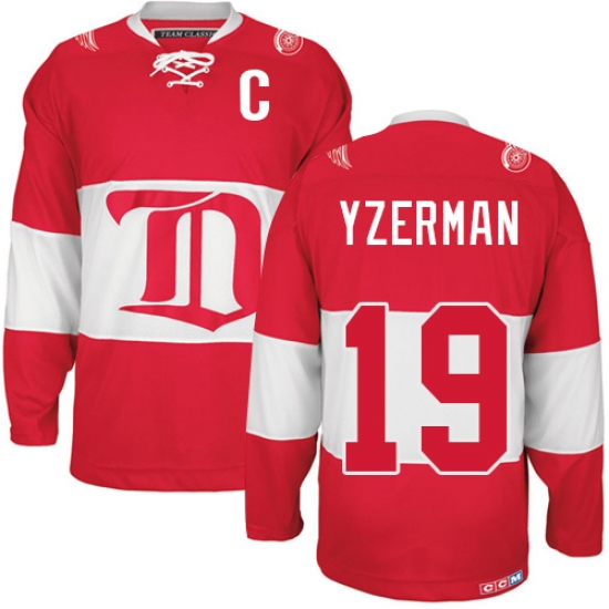 Men's CCM Detroit Red Wings #19 Steve Yzerman Authentic Red Winter Classic Throwback NHL Jersey