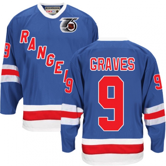 Men's CCM New York Rangers #9 Adam Graves Premier Royal Blue 75TH Throwback NHL Jersey