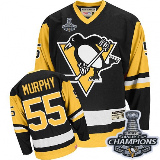Men's CCM Pittsburgh Penguins #55 Larry Murphy Premier Black Throwback 2017 Stanley Cup Champions NHL Jersey